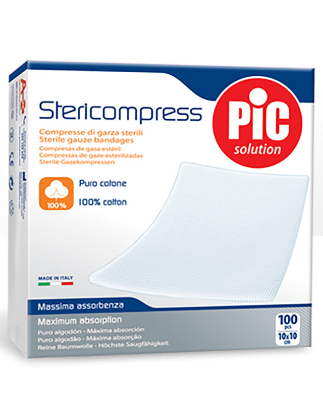 COMPRESSE STERICOMPRESS Descrizione Le compresse Stericompress sono garze sterili in cotone idrofilo. Tamponano e proteggono qualunque tipo di ferita -dalle...