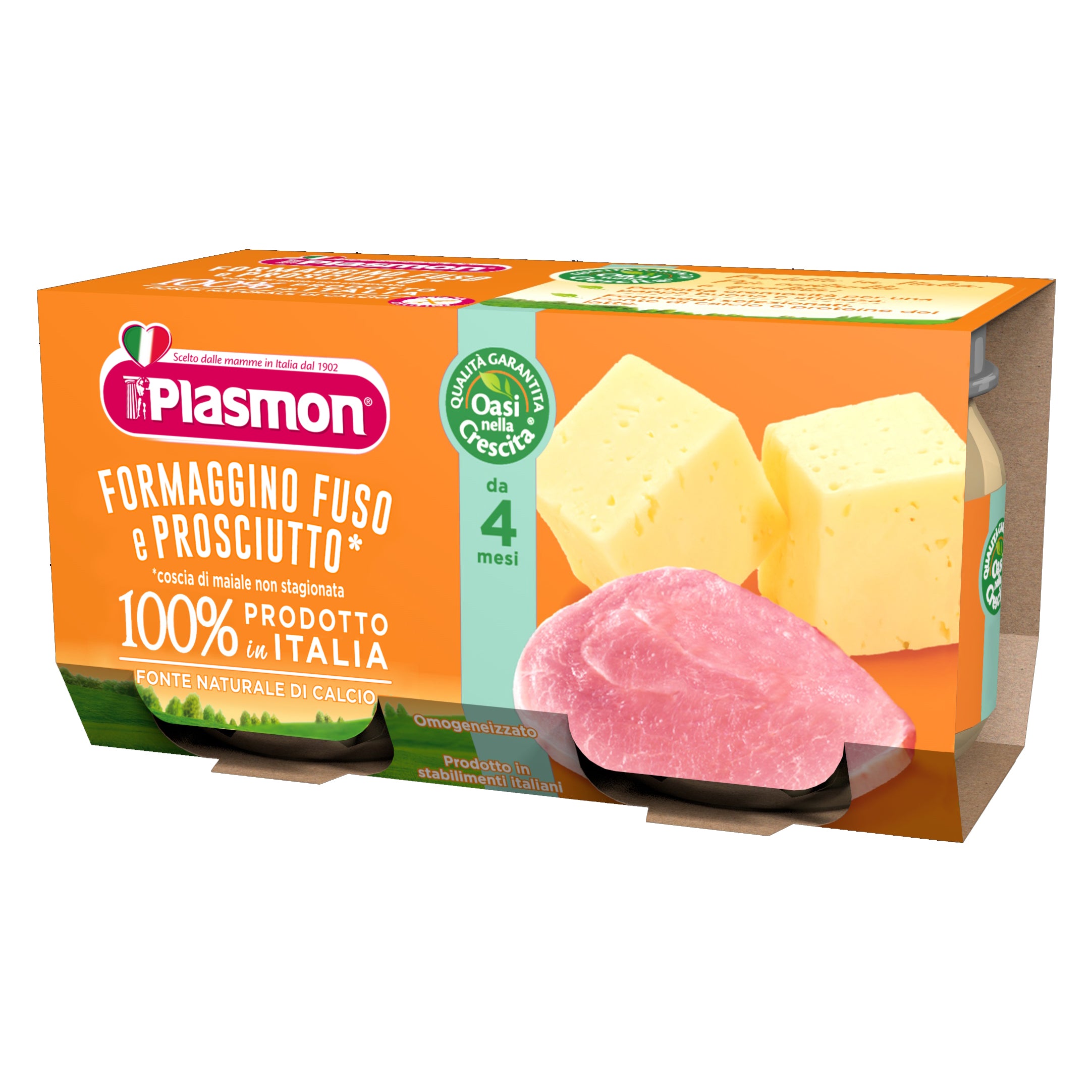 PlasmonFORMAGGIO FUSOPROSCIUTTO Omogeneizzato di formaggino con prosciutto cotto. Con il calcio e le proteine del latte.Dal 4°/6° mese, salvo diversa...