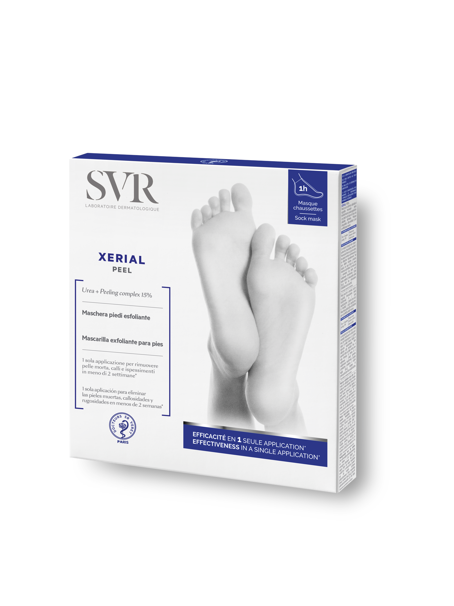 XÉRIAL PEEL Maschera esfoliante per piedi. Modalità d'uso Indossare i calzini per 1 ora, quindi sciacquare. 4 o 5 giorni...