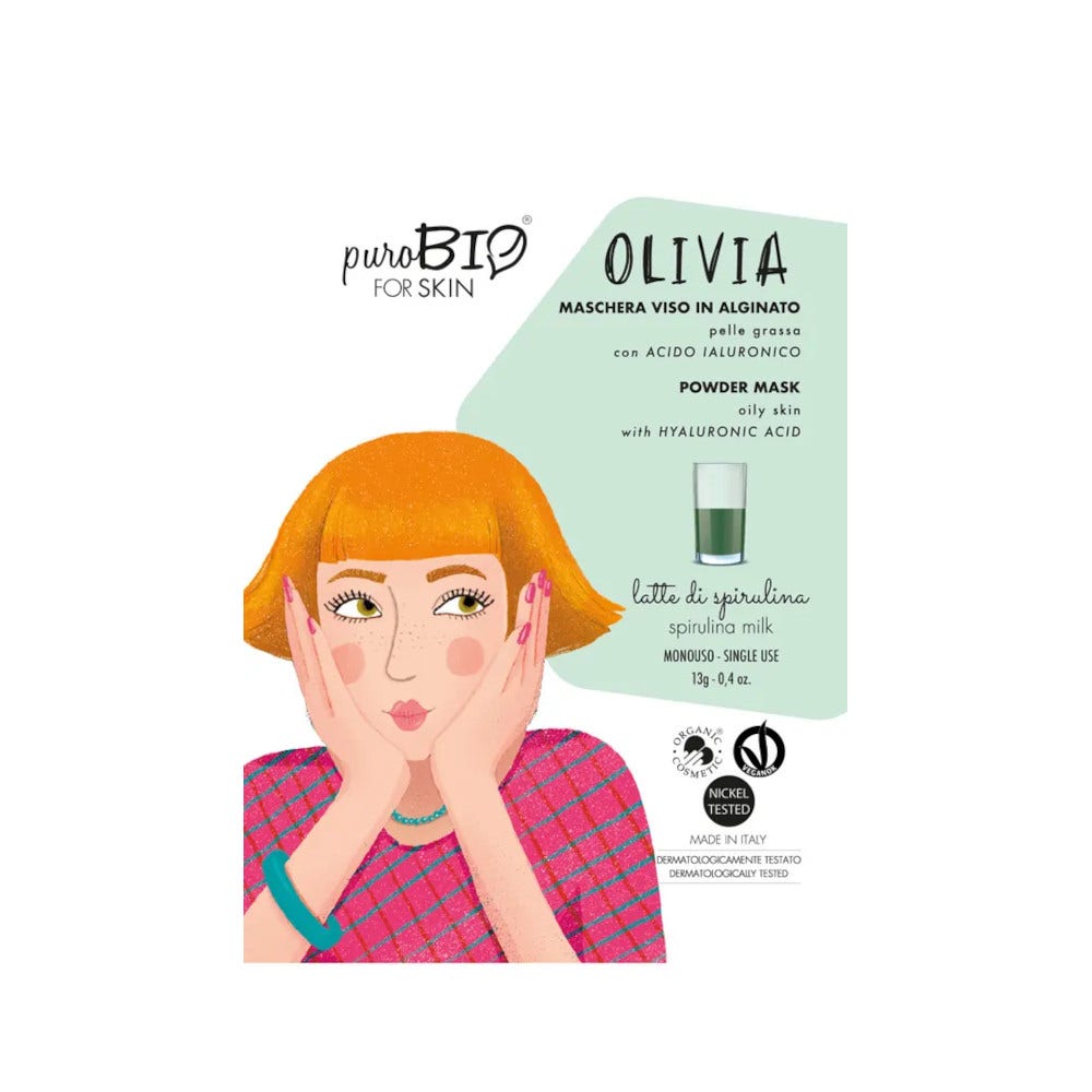 Purobio Olivia Maschera Peel-Off Pelle Grassa Acido Ialuronico Latte Di Spirulina 13g
