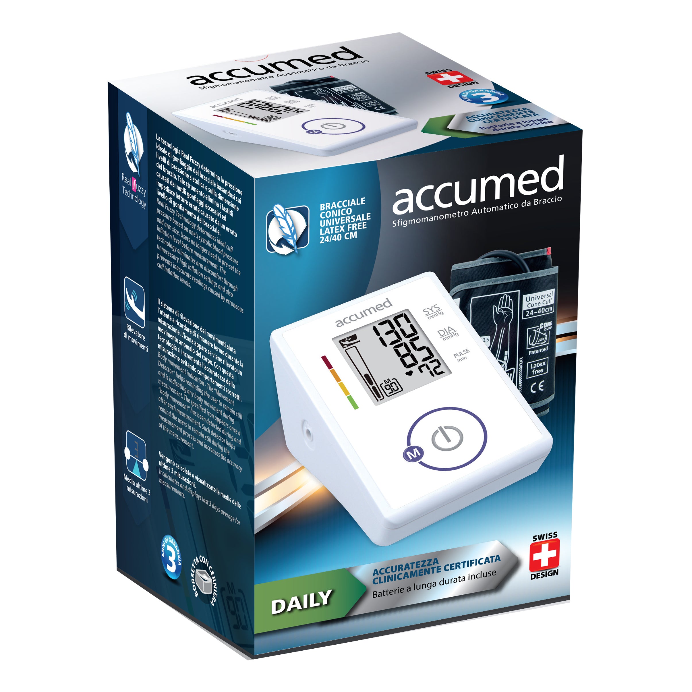 accumed DAILY Sfigmomanometro Automatico da BraccioDispositivo Medico CE. Certificato clinicamente.Misuratore di pressione automatico con tecnologia Real Fuzzy che determina la...