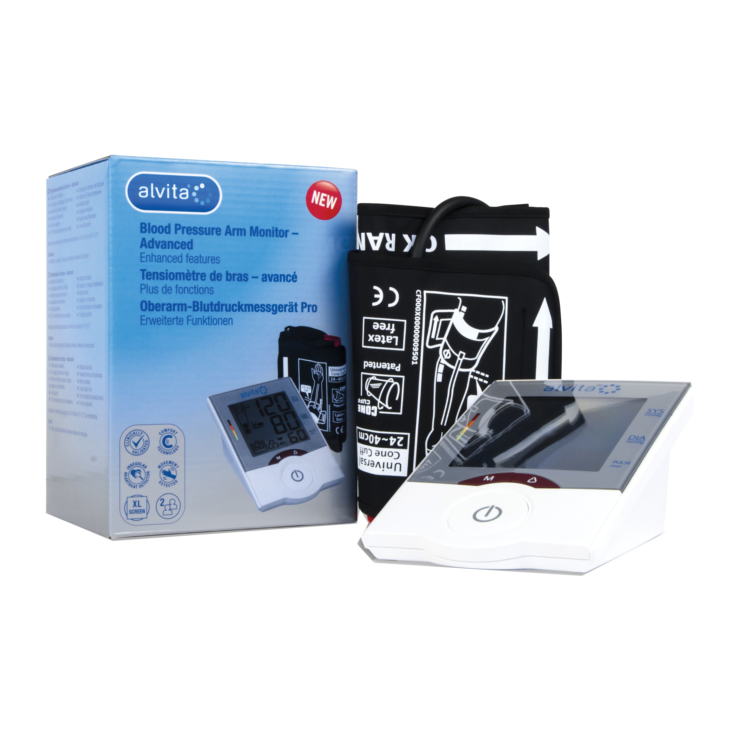 alvita Sfigmomanometro da braccio Descrizione Sfigmomanometro da braccio. Clinicamente testato. Tecnologia di gonfiaggio confortevole. Sensore di movimento. Rilevatore di battiti...