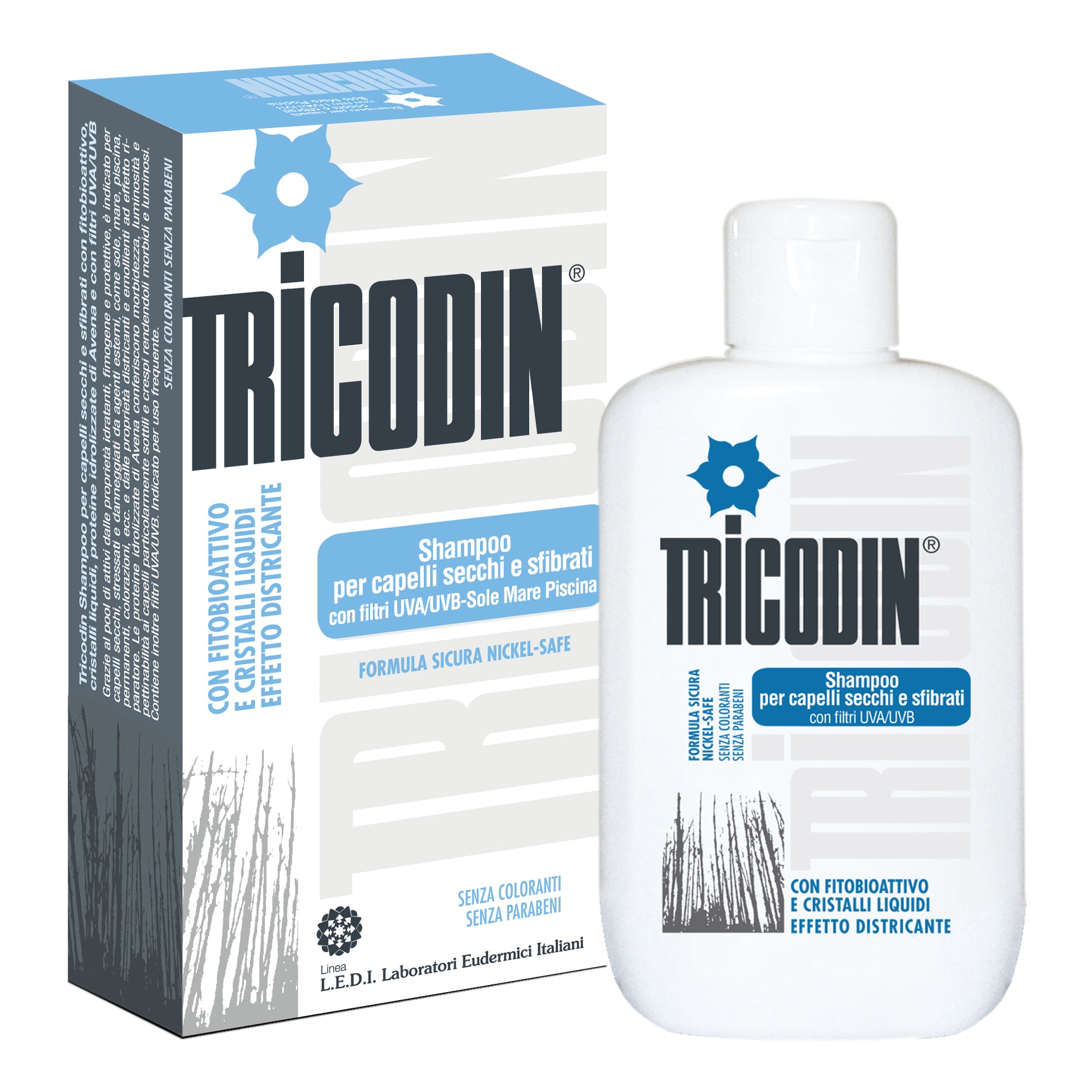 TRICODIN SHAMPOO CAPELLI SECCHI Shampoo per capelli secchi e sfibrati. Detergente delicato, emolliente e idratante ad azione filmogena protettiva, indicato...