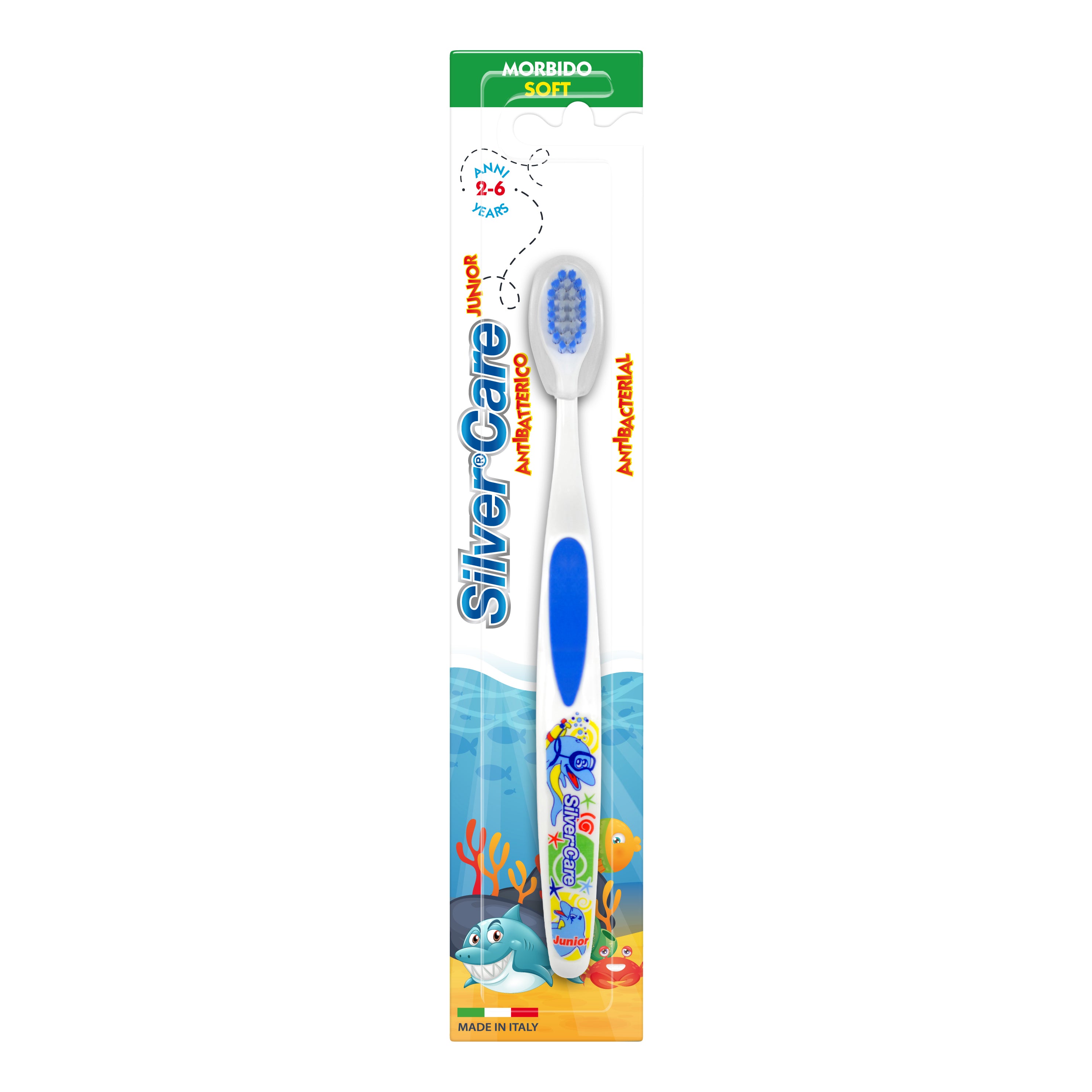 Silver Care Junior SPAZZOLINO 2/6 ANNI Caratteristiche: - la testina compatta raggiunge agevolmente i premolari mentre le setole medie con...