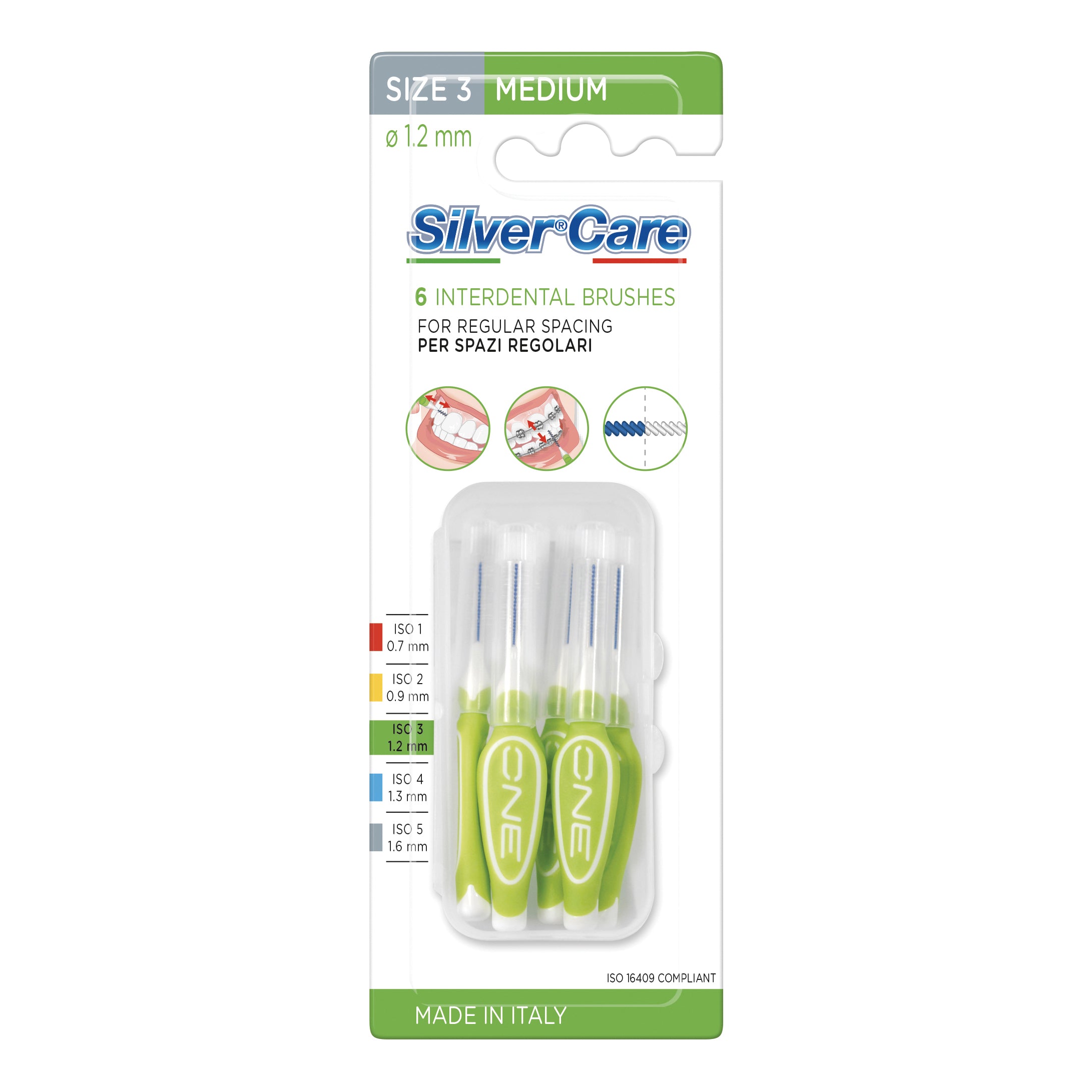 SilverCare SCOVOLINI INTERDENTALI MEDIUM Descrizione Scovolini interdentali ideali per la pulizia degli spazi interdentali, corone, ponti fissi, impianti o apparecchi...