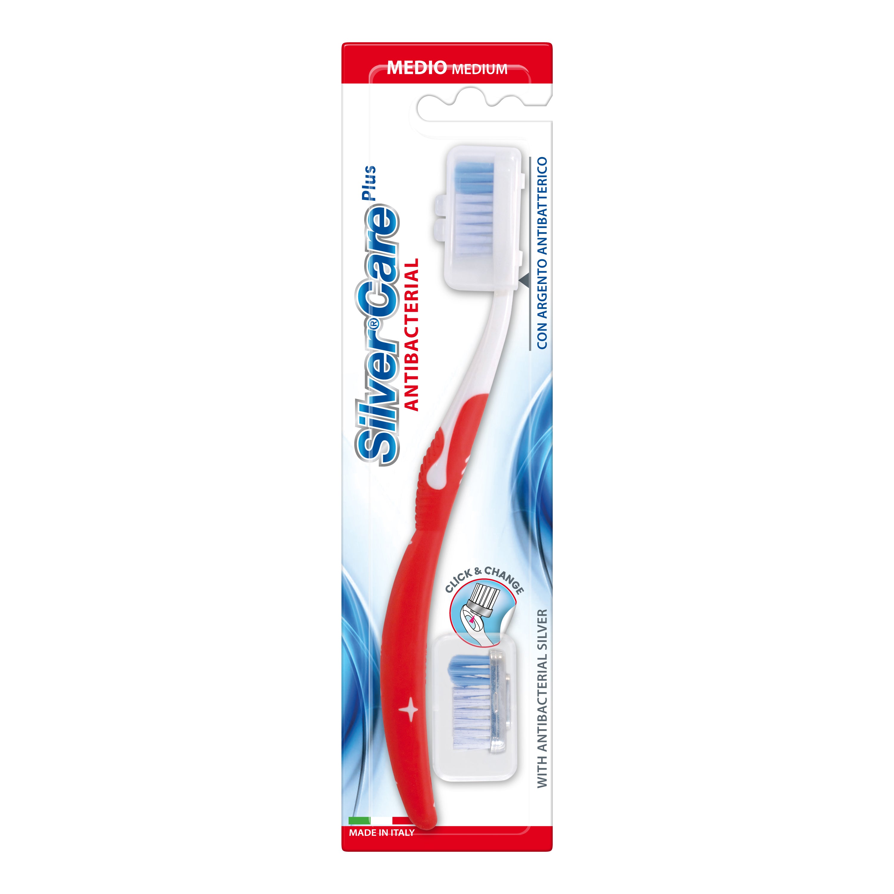 Silver Care Plus SPAZZOLINO ANTIBATTERICO MEDIO Indicazioni: le setole con ciuffo interdentale a microrilievi creano una sensazione unica in bocca,...