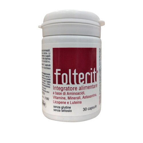 Folterit Descrizione Integratore alimentare a base di aminoacidi, vitamine, minerali, astaxantina, licopene e luteine. Zinco e selenio contribuiscono al mantenimento...