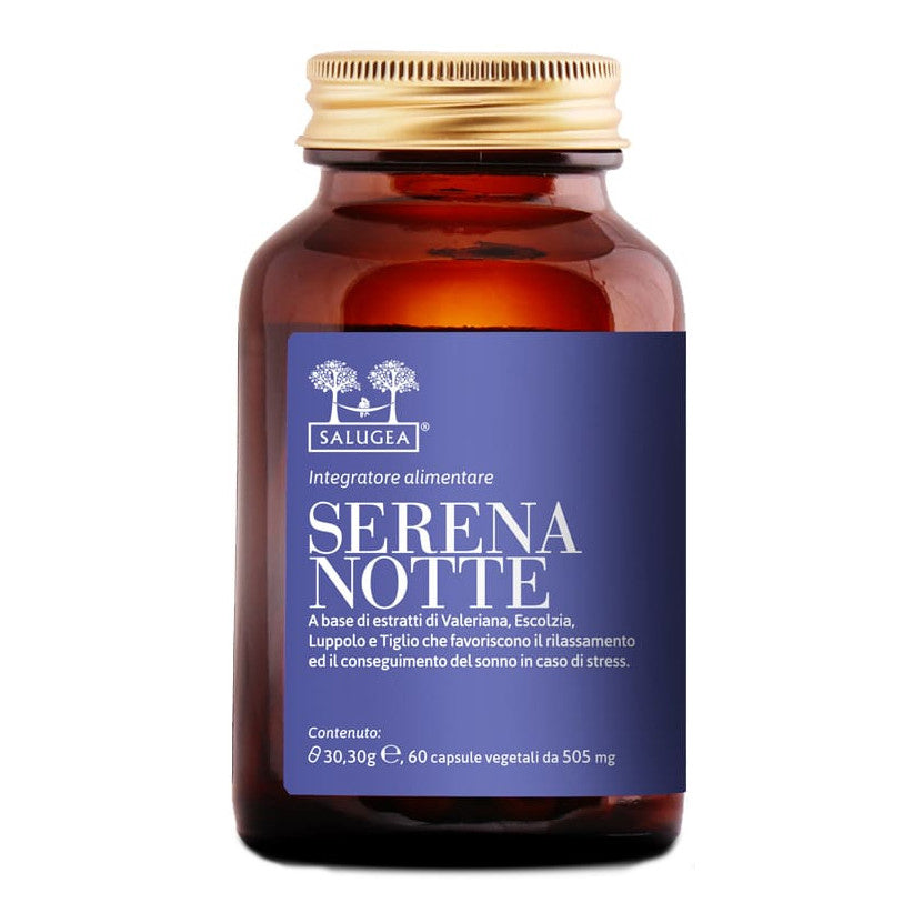 SALUGEA SERENA NOTTE Descrizione Integratore alimentare a base di estratti di valeriana, escolzia, luppolo e tiglio che favoriscono il rilassamento...