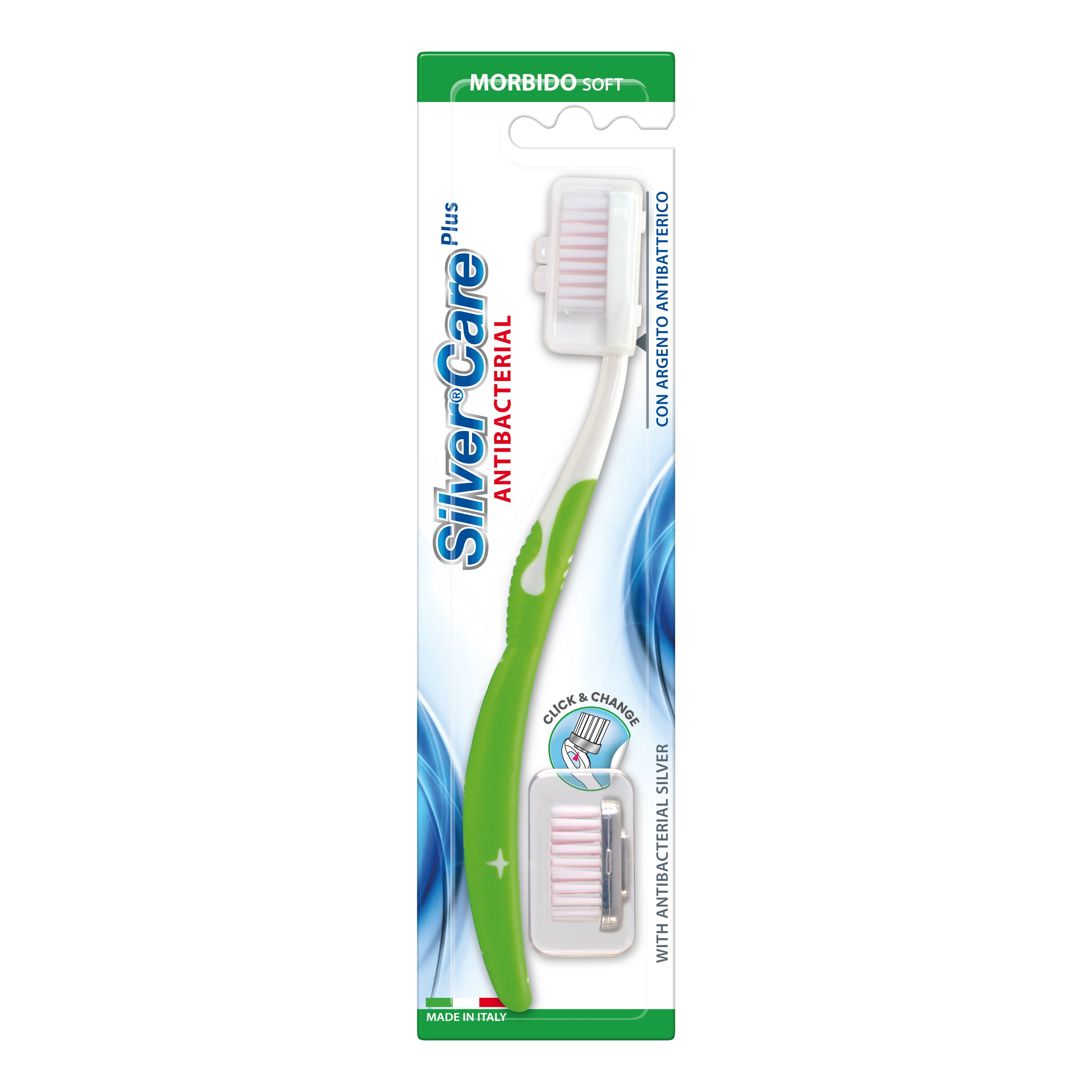 Silver Care Plus RICAMBIO ANTIBATTERICO MORBIDO Indicazioni: grado di elasticità e punte arrotondate delle setole consentono un massaggio gengivale tanto...