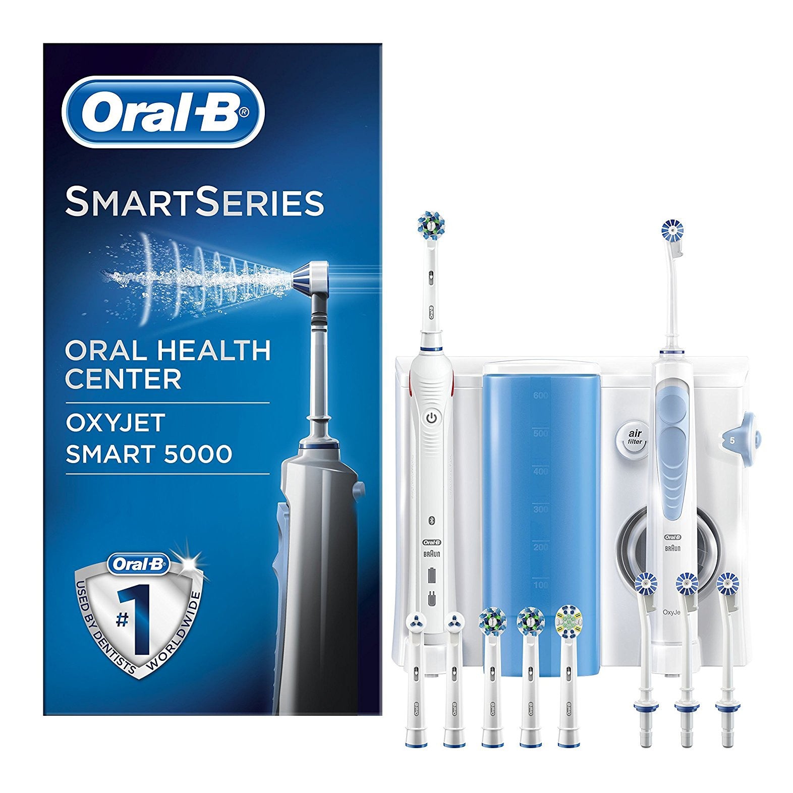 Oral B SMARTSERIES OXYJET + SMART 5000 Descrizione Combina la pulizia profonda dello spazzolino Smart 5 con l'idropulsore OxyJet. Dotazione:...