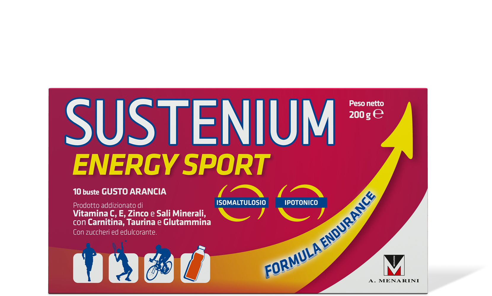 SUSTENIUMENERGY SPORTGUSTO ARANCIAProdotto a base di:Sali Minerali, Carnitina,Tiamina, Glutammina,Vitamina C ed E, Zinco.Integratore Alimentare.AvvertenzeNon eccedere la dose giornaliera consigliata. Tenere...