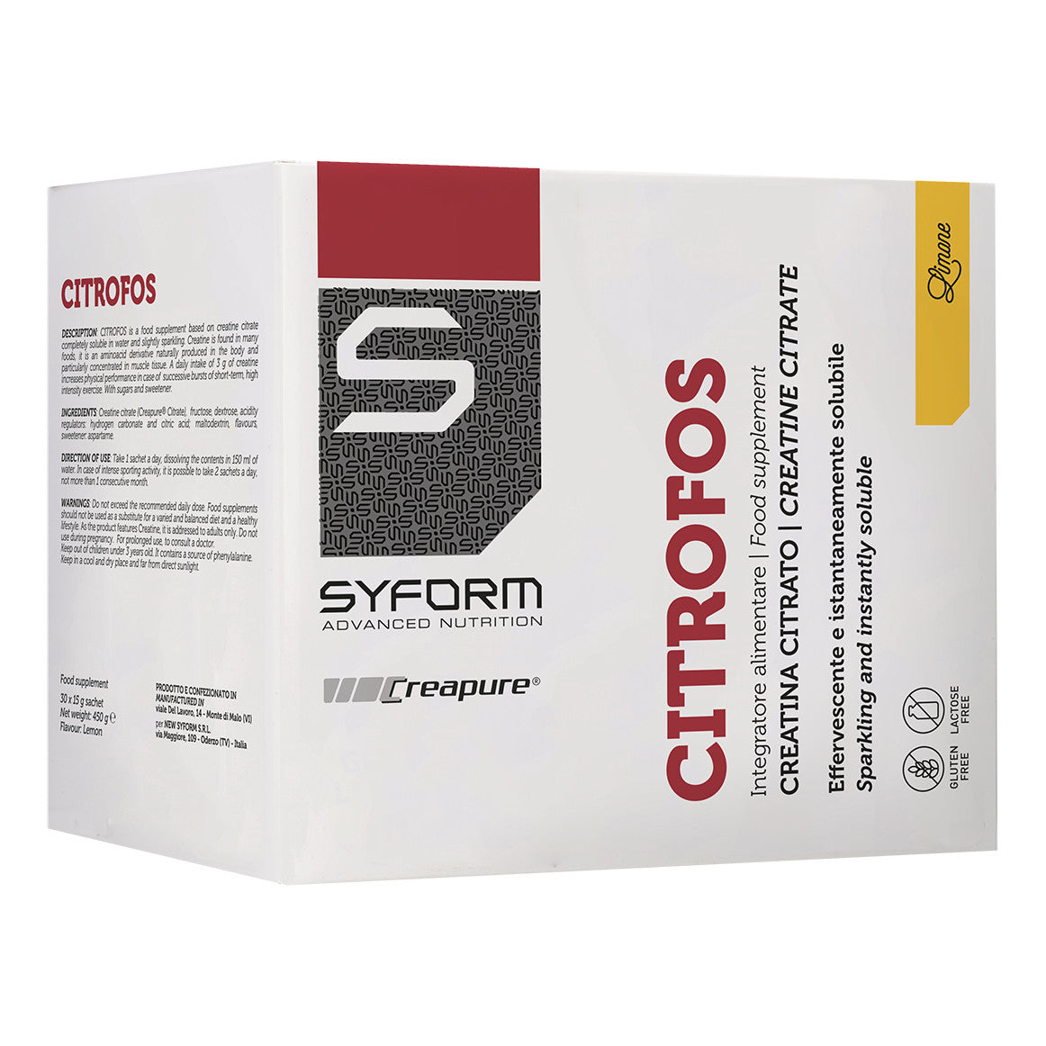 CITROFOS Limone Descrizione Citrofos è un integratore alimentare di creatina citrato Creapure, altamente solubile. Ingredienti Creatina citrato (Creapure citrate), fruttosio,...