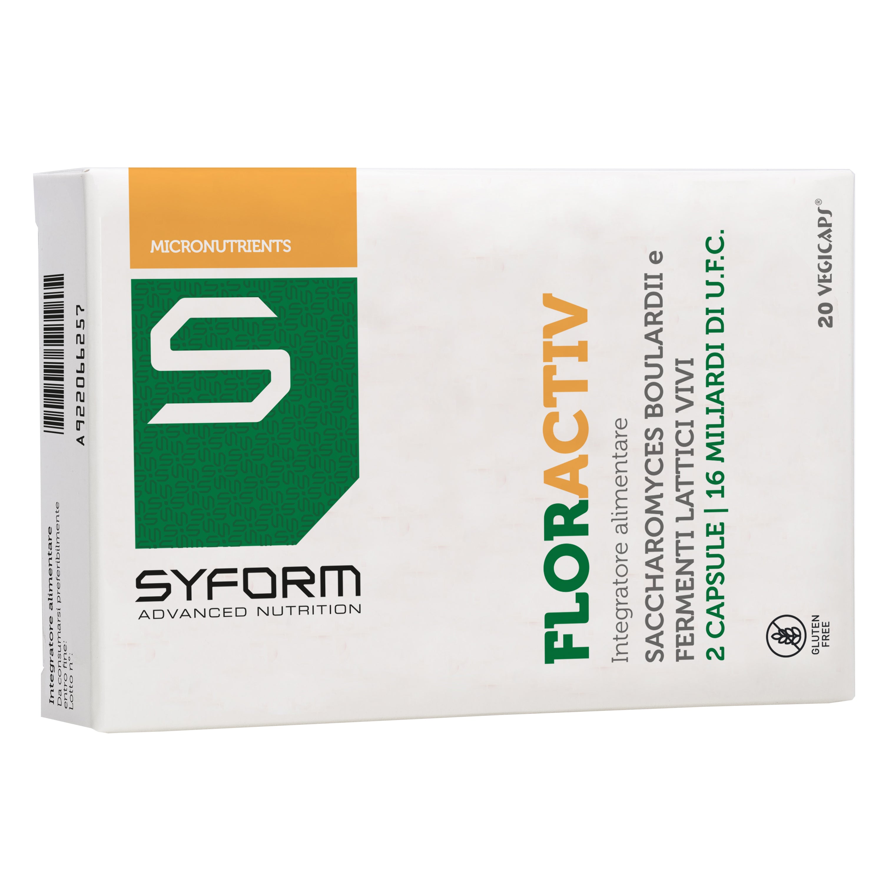 FLORACTIV Descrizione Integratore alimentare a base di Saccharomyces boulardii e fermenti lattici vivi. Ingredienti Saccharomyces boulardii MTTC 5373, inulina; agente...