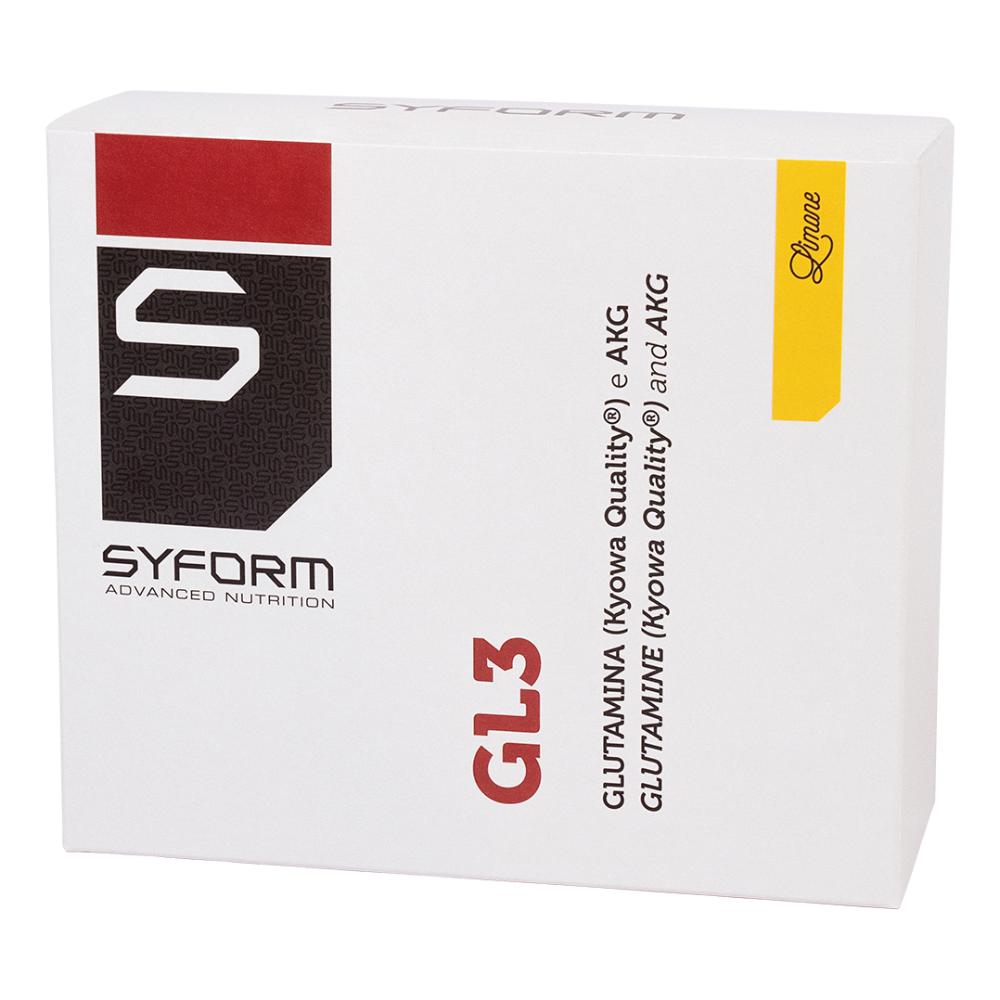 GL3 Limone Descrizione Integratore alimentare a base di glutamina. Ingredienti L-glutamina (Kyowa Quality), maltodestrine, N-acetil L-glutamina, L-glutamina alfachetoglutarato, aroma; agente...