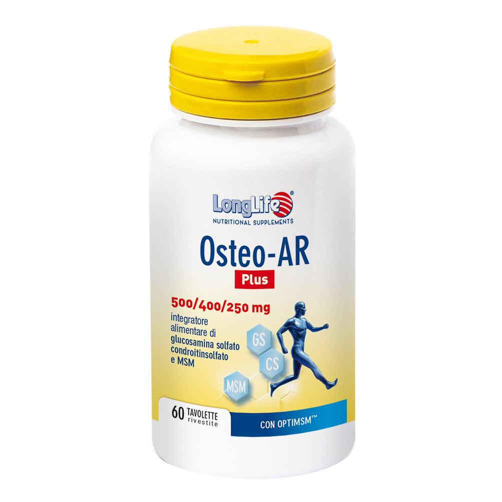 LongLife Osteo-AR Plus 500/400/250 mg glucosamina solfato controitinsolfato msm CON OPTIMSM Integratore alimentare. Il magnesio contribuisce al mantenimento di ossa...
