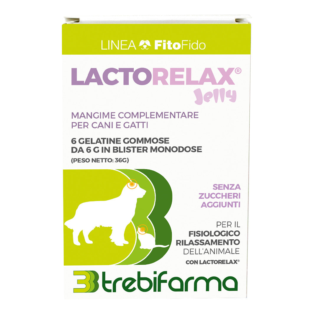LACTORELAX Jelly Descrizione Mangime complementare per cani e gatti in gelatine gommose in comodo blister monodose con LACTORELAX. Contiene triptofano...