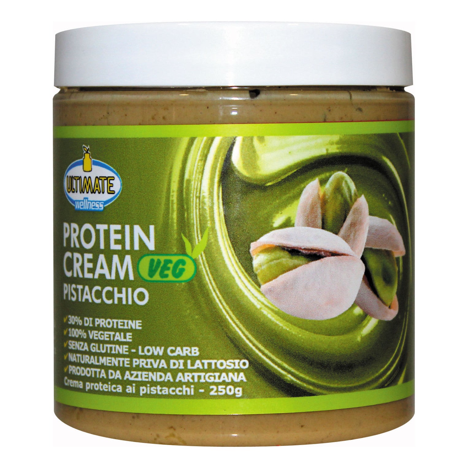 ULTIMATE WELLNESS PROTEIN CREAM PISTACCHIO Crema proteica ai pistacchi con proteine vegetali. 100% vegetale. 30% di proteine. Low carb. Con...