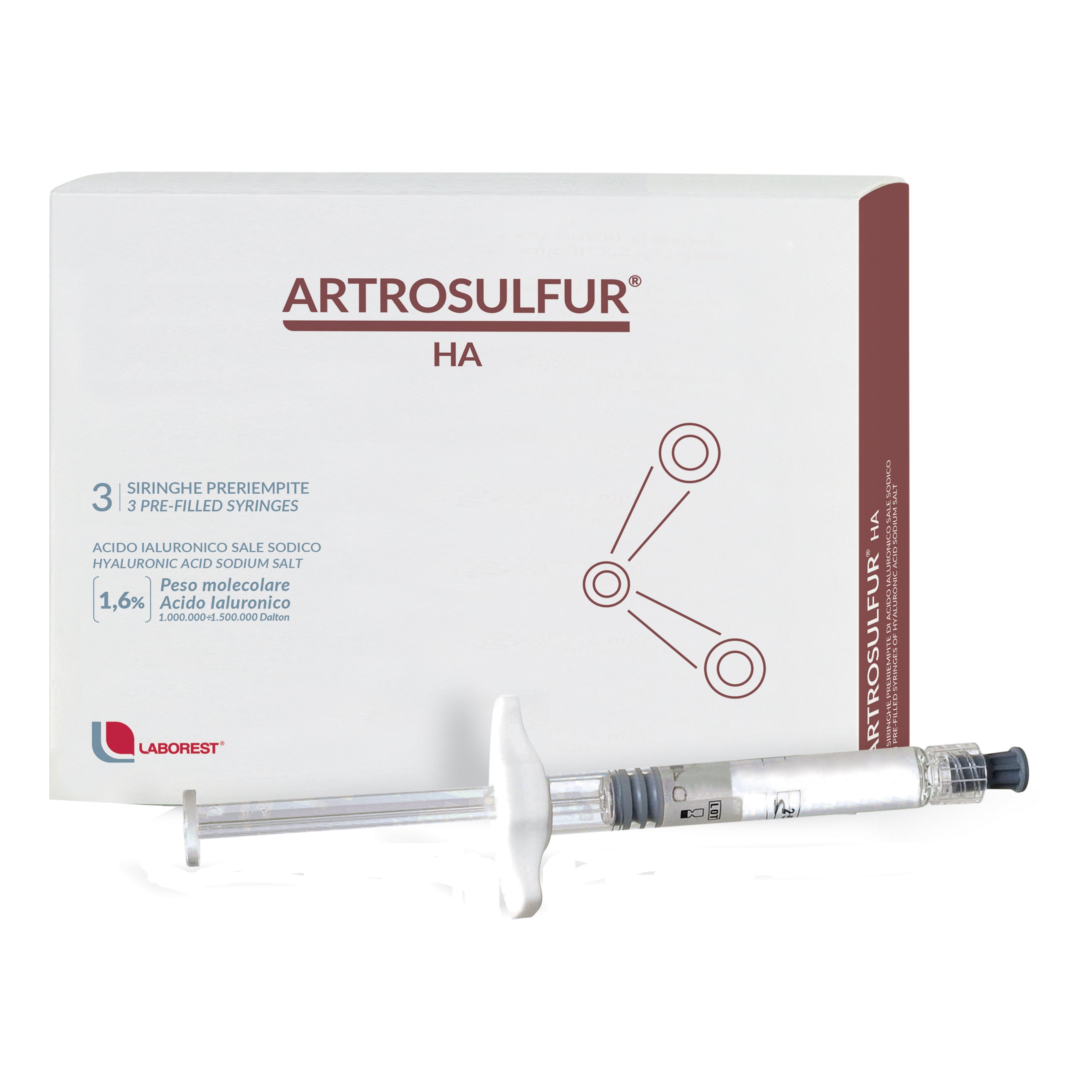 Artrosulfur HA Dispositivo medico CE 0373 di classe III. Siringa preriempita a base di ialuronato di sodio [1,6%] di peso...