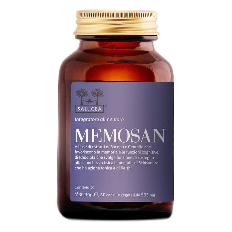 SALUGEA MEMOSAN Descrizione Integratore alimentare a base di estratti di bacopa e centella che favoriscono la memoria e le funzioni...