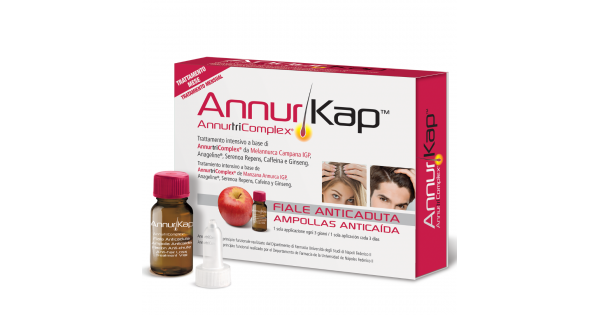 Annurkap Fiale contiene estratto di Mela Annurca, capace di promuovere la crescita dei capelli e di rinforzarli.