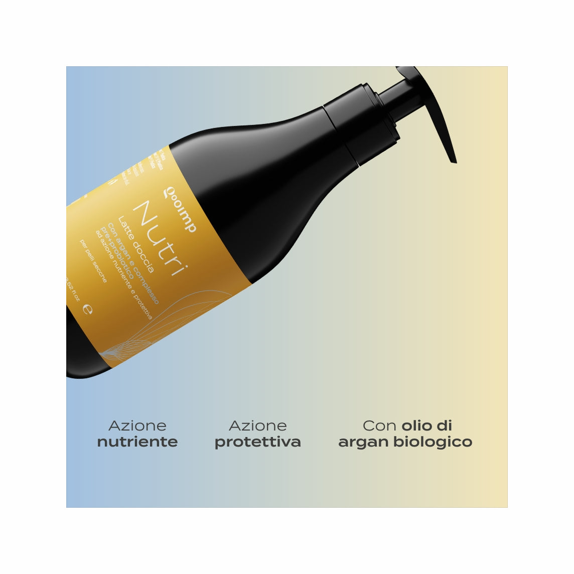 NUTRI è un latte doccia 97% naturale, con olio di argan biologico e complesso pre+probiotico, noti per la loro azione nutriente e protettiva. Deterge e nutre la pelle sotto la doccia, lasciandola morbida e protetta. Preserva l’equilibrio del microbioma cutaneo, rendendo la pelle più resistente alle aggressioni esterne.