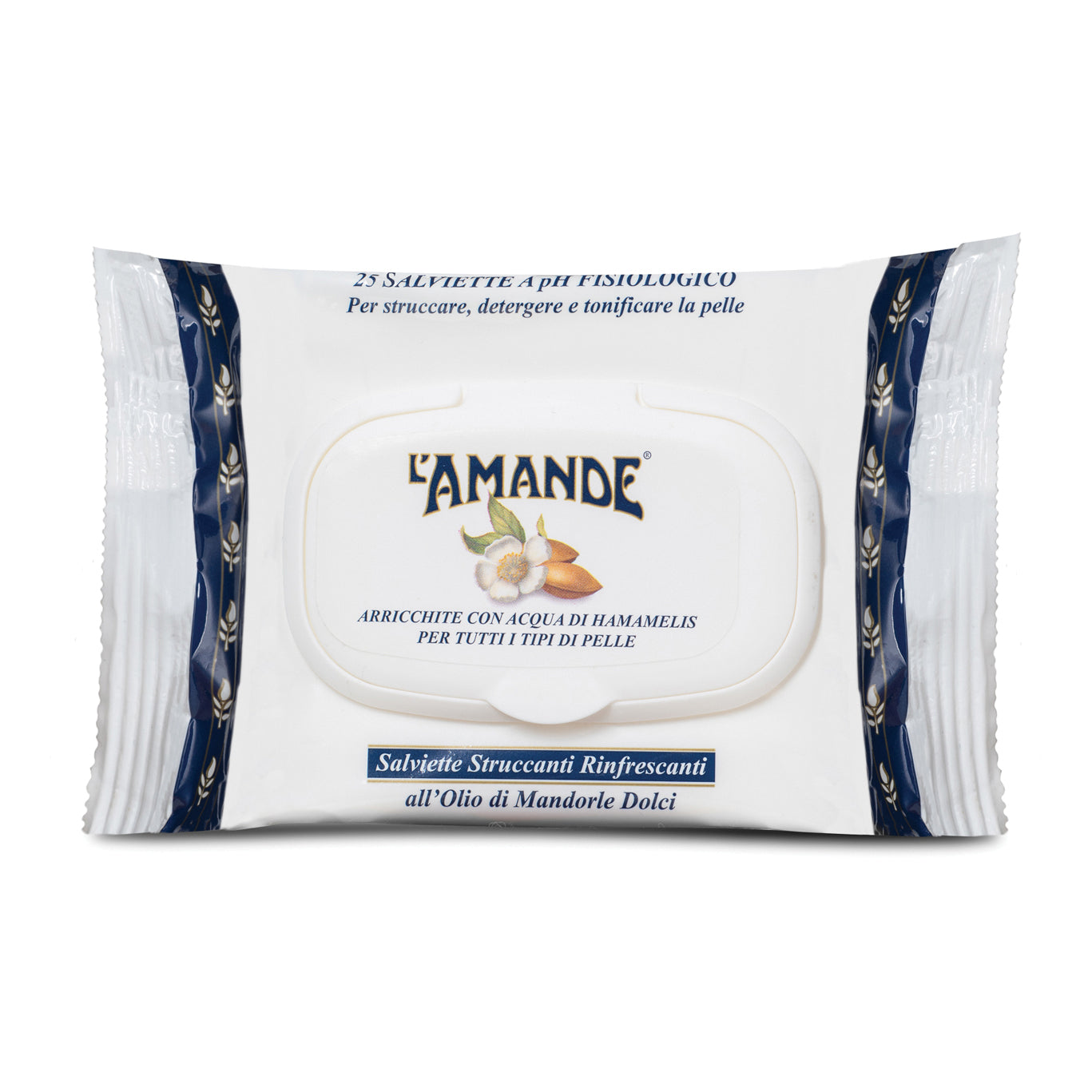 salviette struccanti realizzate in morbido tessuto alveolato. La particolare formulazione arricchita con l'olio di mandorle dolci, l'acqua di hamamelis ed il bisabololo (principio attivo emolliente della camomilla) aiuta ad eliminare le impurità e rimuovere ogni traccia di trucco con delicatezza, lasciando la pelle morbida e tonificata.