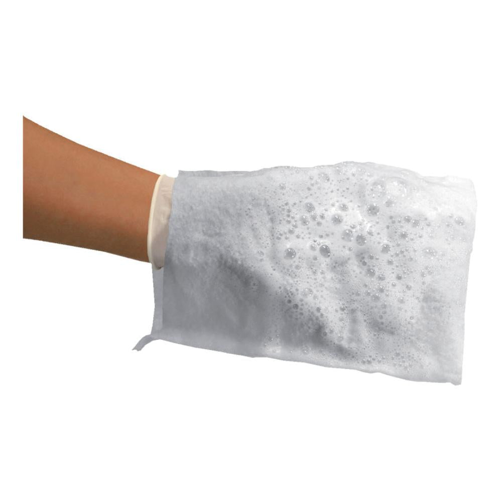Bagnare la manopola e utilizzarla per il lavaggio della pelle.