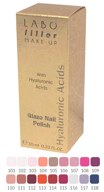 Formulazione contenente due acidi ialuronici. Facendo particolare attenzione al benessere delle unghie la formula innovativa abbina elevata performance del prodotto ad un effetto protettivo e trattante. L'applicazione risulta estremamente facile grazie alla fluidità della vernice che copre perfettamente l'unghia donando un look perfetto e a lunga tenuta. Creati come alternativa sana per la bellezza senza rinunciare ai colori fashion, anche gli smalti laccati della linea Labo Filler Make-Up sono privi di sostanze nocive alla salute: senza toluene, senza formaldeide, senza ftalati.
