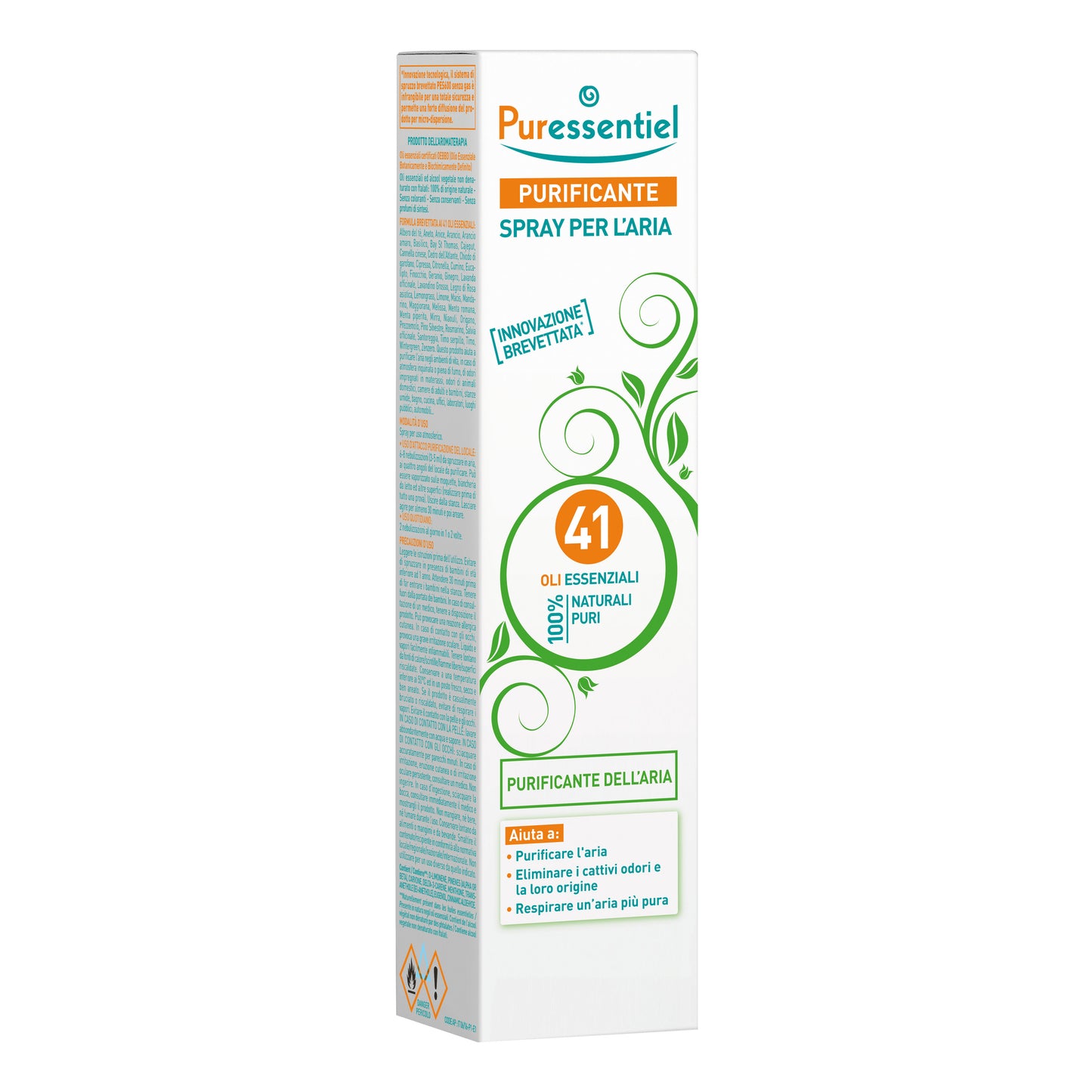 spray brevettato, 100% naturale, che associa 41 oli essenziali tra i più attiviper purificare l'aria, limitare l'insorgere di irritazioni, respirare un' aria piùpura in casa (camere da letto, in presenza di persone malate, stanze umide con pocaventilazione, bagni e cucine), depurare l'atmosfera inquinata e alterata da cattivi odorinei tessuti (fumo, animali domestici), automobili, uffici, luoghi pubblici.