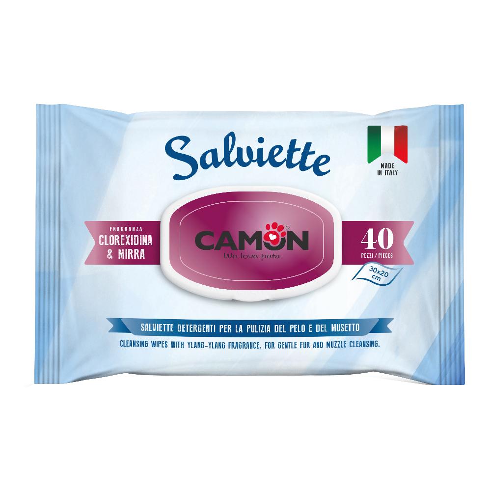 CAMON SALVIETTE DETERGENTI CLOREXIDINA E MIRRA Descrizione Salviette detergenti per l'animale domestico, da tenere sempre a portata di mano: a...